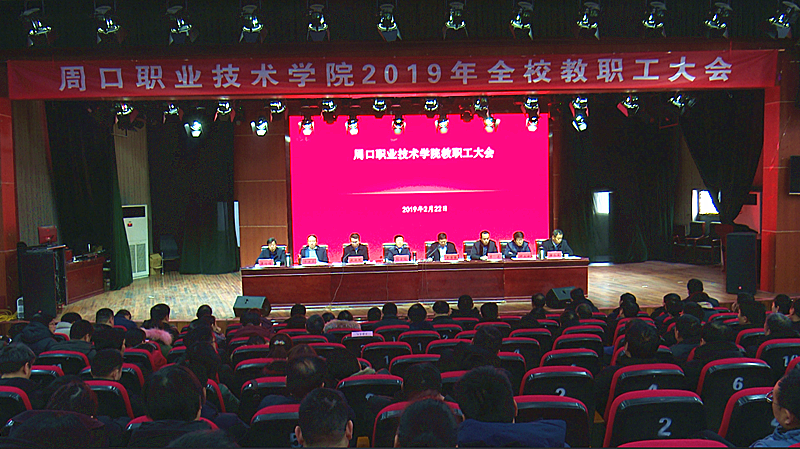 李清臣指出,2018年是改革开放40周年,是贯彻落实党的十九大精神的开局之年,也是学校发展不平凡的一年。在省高校工委、省教育厅和市委、市政府的正确领导下,学校深入学习贯彻习近平新时代中国特色社会主义思想和党的十九大精神,认真贯彻落实全国教育大会精神,坚持立德树人根本任务,以建设省级优质高职院校为契机,深化内涵建设,全面加强管理,圆满完成了各项目标任务,学校呈现出蒸蒸日上、快速发展的良好态势。一是扎实推进省级优质校建设,办学水平持续提升。在《2018-2019年中国高职高专院校竞争力排行榜》中,我校位居全国1386所专科(高职高专)院校第232位,较去年提高了32个位次。刘蕴老师主持的《静态网页设计》入选2018年国家精品在线开放课程,获批河南省智慧农业工程研究中心和周口市农业物联网技术集成与应用重点实验室、数字化临床应用解剖重点实验室、互联网+精准健康教育重点实验室;在南非举行的2018一带一路暨金砖国家技能发展与技术创新大赛总决赛“工业机器人装配与调试”赛项中,我校综合评分获得大赛一等奖。这些都标志着我校优质校建设取得重大突破。二是招生就业形势良好,办学效益日益彰显;三是落实立德树人要求,学生管理持续加强;四是发挥人才资源优势,社会服务美誉提高;五是实施人才强校战略,公开招聘19名医学类专业人才,引进37名高学历人才,1名教师被选派赴德国研修。六是坚持依法治校,服务保障能力得到提高。七是开展校企合作共建,推进学校跨越发展。去年9月19日,学校与恒大集团合作办学升本项目敲定以来,项目对接进展迅速。目前,新校区校址已基本确定,很快进入规划设计与正式建设工作。八是落实全面从严治党,营建风清气正校园。九是加强思想政治工作,共促学校和谐发展。